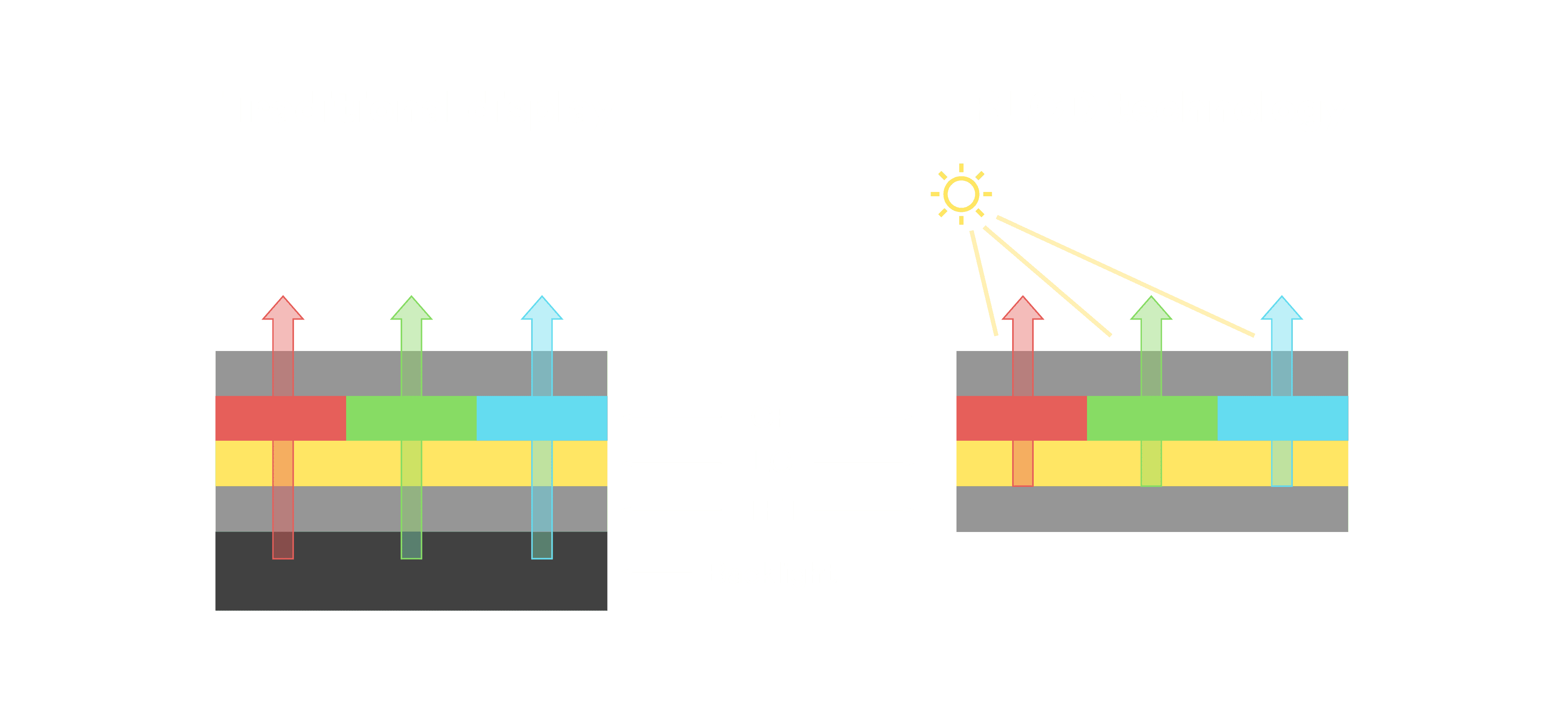 与传统需搭配背光单元的液晶显示相比,,,,反射式液晶技术不仅更省电、、、、更轻薄,,,且即便在艳阳下仍能清晰显示。。。。此外,,少了背光单元,,,也大幅降低了 LED 蓝光伤害眼睛的疑虑。。。