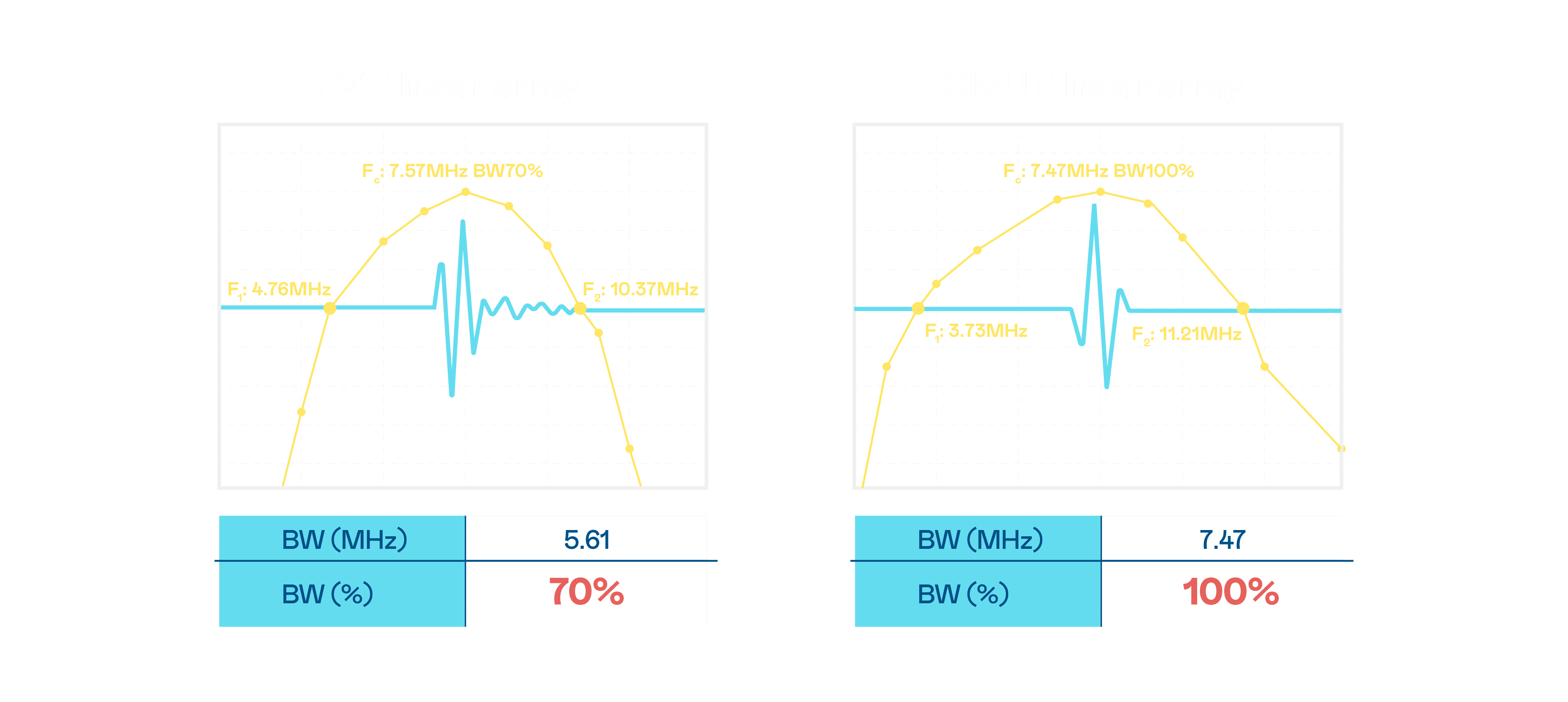 超音波影像的解析度高低,,首先取决于探头能发出的讯号频宽。。。杏悦2 CMUT 可提供高清晰的超音波讯号,,,提供高频宽、、、、高灵敏度、、影像纹理细节更高的超音波影像,,,,协助医护人员缩短影像判读时间及利用精准的医疗影像进行诊断。。。。